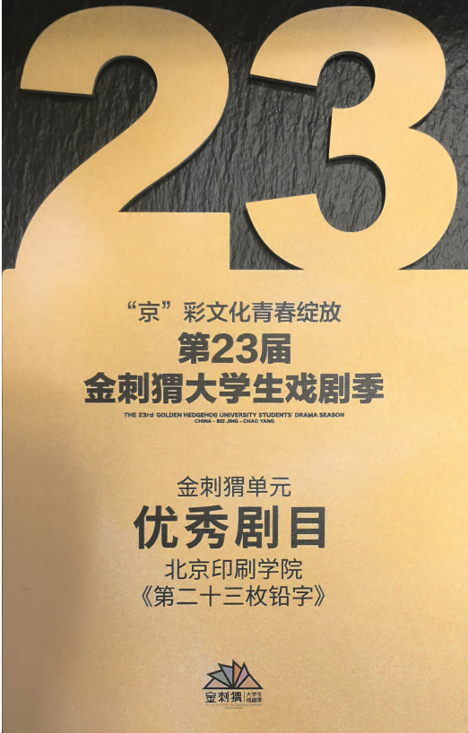 近日,由北京市文化和旅游局、北京市文学艺术界联合会、共青团北京市委员会、朝阳区人民政府联合主办的“‘京’彩文化 青春绽放”第23届金刺猬大学生戏剧季青春盛典,在郎园Station准点剧场圆满落幕。我校原创红色主题话剧《第二十三枚铅字》在“金刺猬单元”激烈角逐中表现亮眼,从全国征集的141部参赛作品中突围,成功入围26部终评剧目,最终跻身10部“优秀剧目”之列,实现学校在该全国性权威戏剧赛事中的历史性突破。