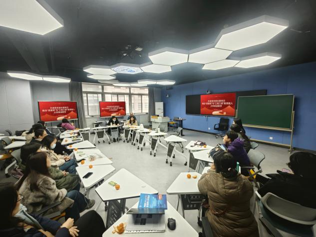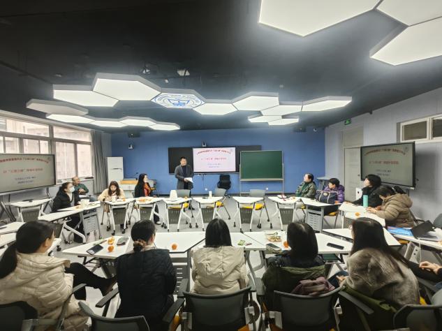 本次活动中,特邀马克思主义学院鞠华老师作了题为《以“三观三感”厚植外语思政》的专题辅导报告。鞠老师从党史中党的领袖人物学习外语、胸怀天下、坚持真理的故事讲起,深刻阐释了外语教育所承载的时代使命与价值根基。他结合学校“服务国家重大需求、服务首都建设、服务行业前沿”的办学定位与实践案例,强调外语教育必须坚持党的教育方针,与国家发展同频共振。报告系统阐述了构建以“一条主线、两个维度、三观三感”为框架的外语课程思政体系,为党员教师如何在外语教学中强化政治引领、提升育人质量提供了坚实的理论指导和可操作的实践路径。