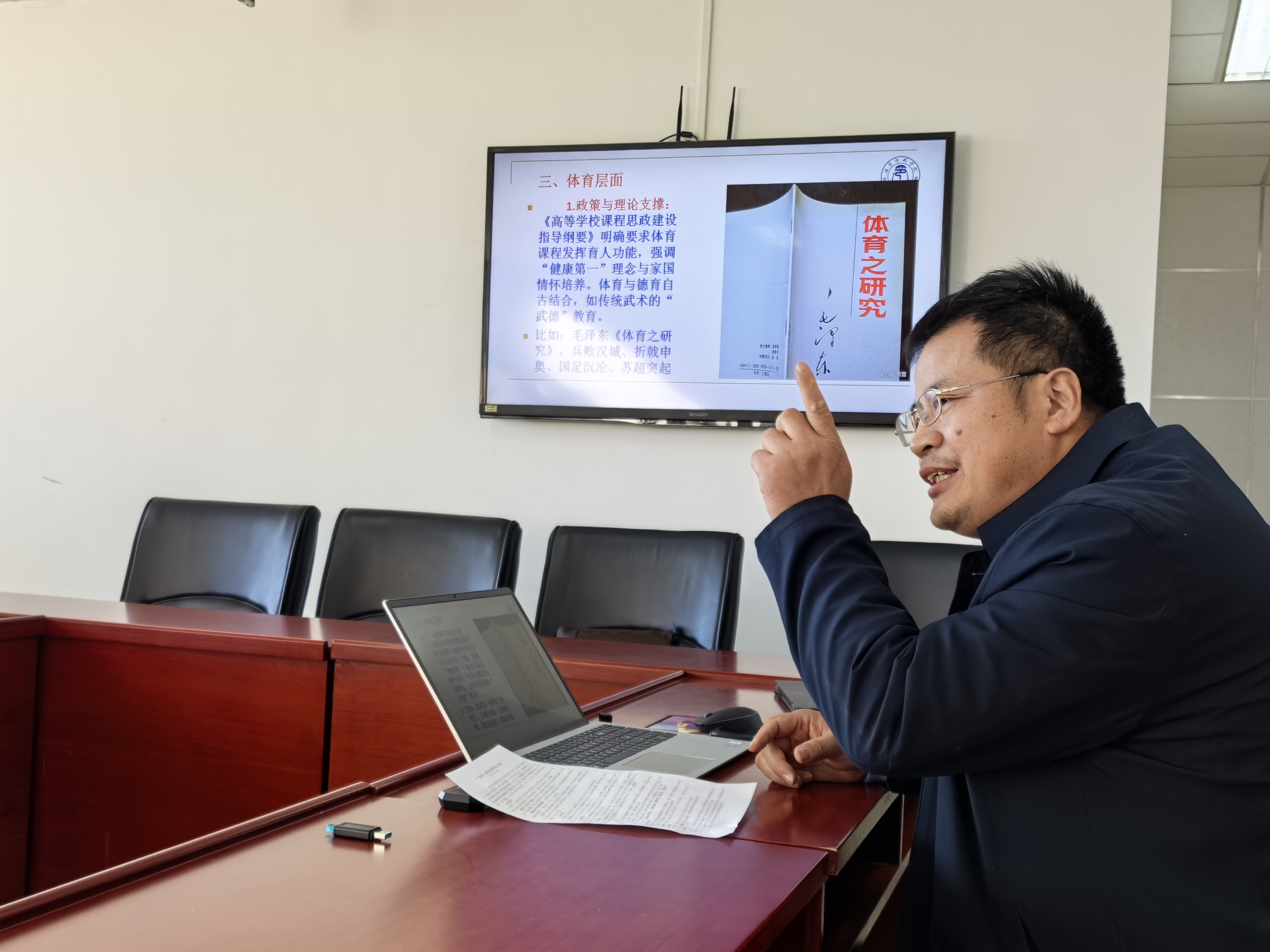 2025年12月2日上午,马克思主义学院教师鞠华受体育部邀请,前往该部开展以“三观三感”为主题的跨学院教学研讨活动。本次交流活动旨在深化教师对于“三观三感”教育理念的理解以及实践应用,促进不同学科教学思想的碰撞与融合,着重探索其在体育教学中的具体应用路径。