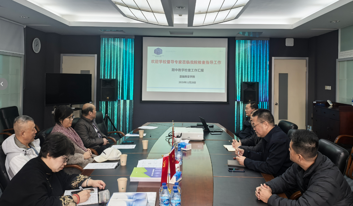 根据教务处开展2025年秋季学期期中教学检查的工作安排,2025年11月28日下午2:00,在N1A212会议室,基础教育学院接受学校督导及教务处督查。学校督导组专家朱晓峰、滕晓铂、郭树林、张宏以及教务处工作人员刘佳瑶到会,基础教育学院学院领导班子、各部室主任、学院督导组参会。副院长张永明主持会议。
