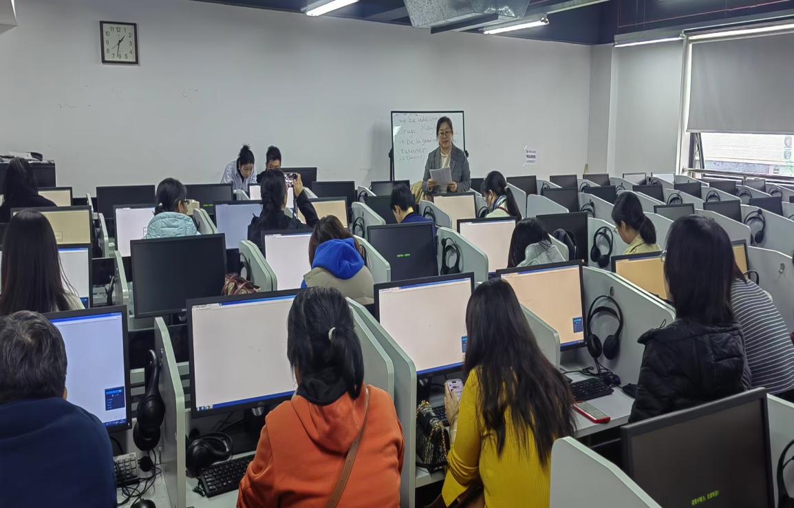 演示讲解环节结束后,教研活动进入实操演练阶段。外语部教师们结合教学实际需求,现场上手操作蓝鸽 AI 一体化考辅系统,傅饶莉、戴子正两位经理则全程巡回指导,针对教师们在操作中遇到的疑问进行“一对一”解答,确保每位教师都能熟练掌握系统的四六级辅导功能与教材组卷功能。从“听讲解”到“亲实操”,教师们不仅深化了对 AI 教学工具的理解,更找到了将技术融入日常教学与四六级备考的具体路径,为后续教学工作注入了新的动力。