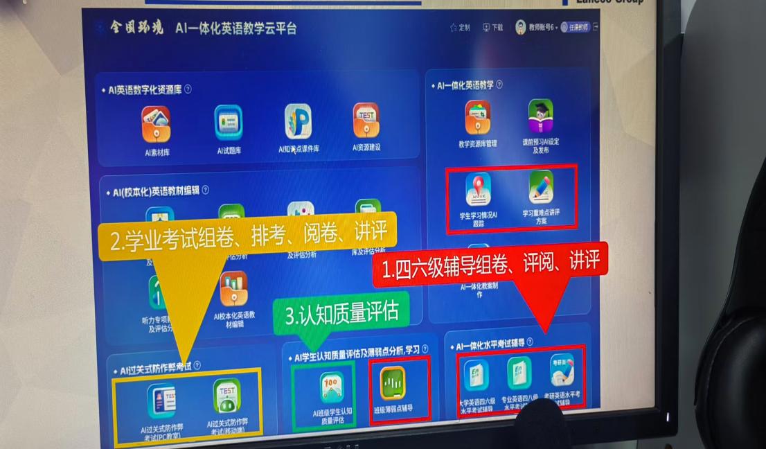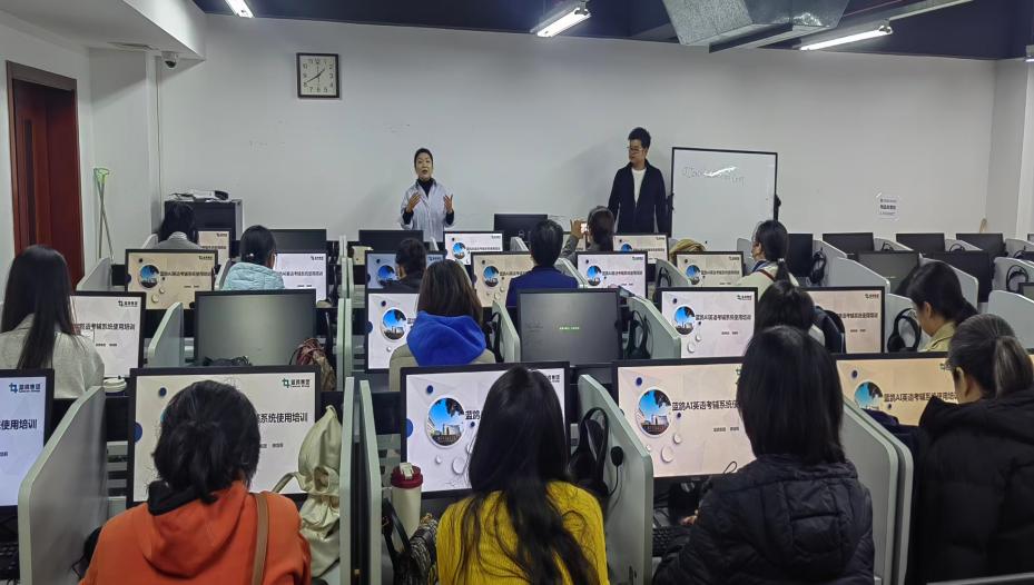 新学期伊始,为深化 AI 技术与大学英语教学的融合应用,切实推动教学质量提升及学生四六级通过率优化,2025 年10 月22日下午,基础教育学院外语部于主校 N1B 第三微机室,专题开展以“AI 数智赋能大学英语教学”为主题的集体教研活动。活动特别再次邀请蓝鸽集团傅饶莉、戴子正两位经理到场,围绕蓝鸽集团语言学习模块在大学英语日常教学中的实操应用展开现场演示与细致讲解,内容贴合教学需求,受到外语部全体教师的热烈欢迎。